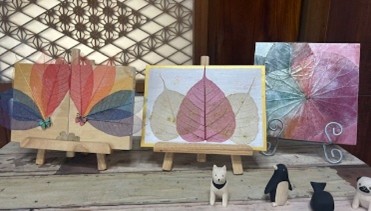 ボタニーペインティングとは、天然の蓮の葉やインド菩提樹(ぼだいじゅ)の葉などを着彩して作るアート作品です♪